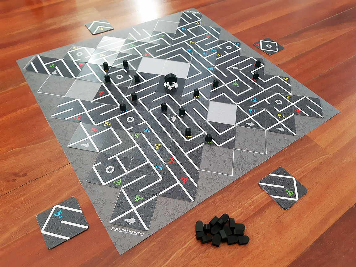 The expansion contains a 44x44cm rollable board made of outdoor resistant fabric, 68 tomb tokens, one meepletaur and a 45 cm tube. The full game also includes a deck of 69 square cards. Visit Asterion for more information.